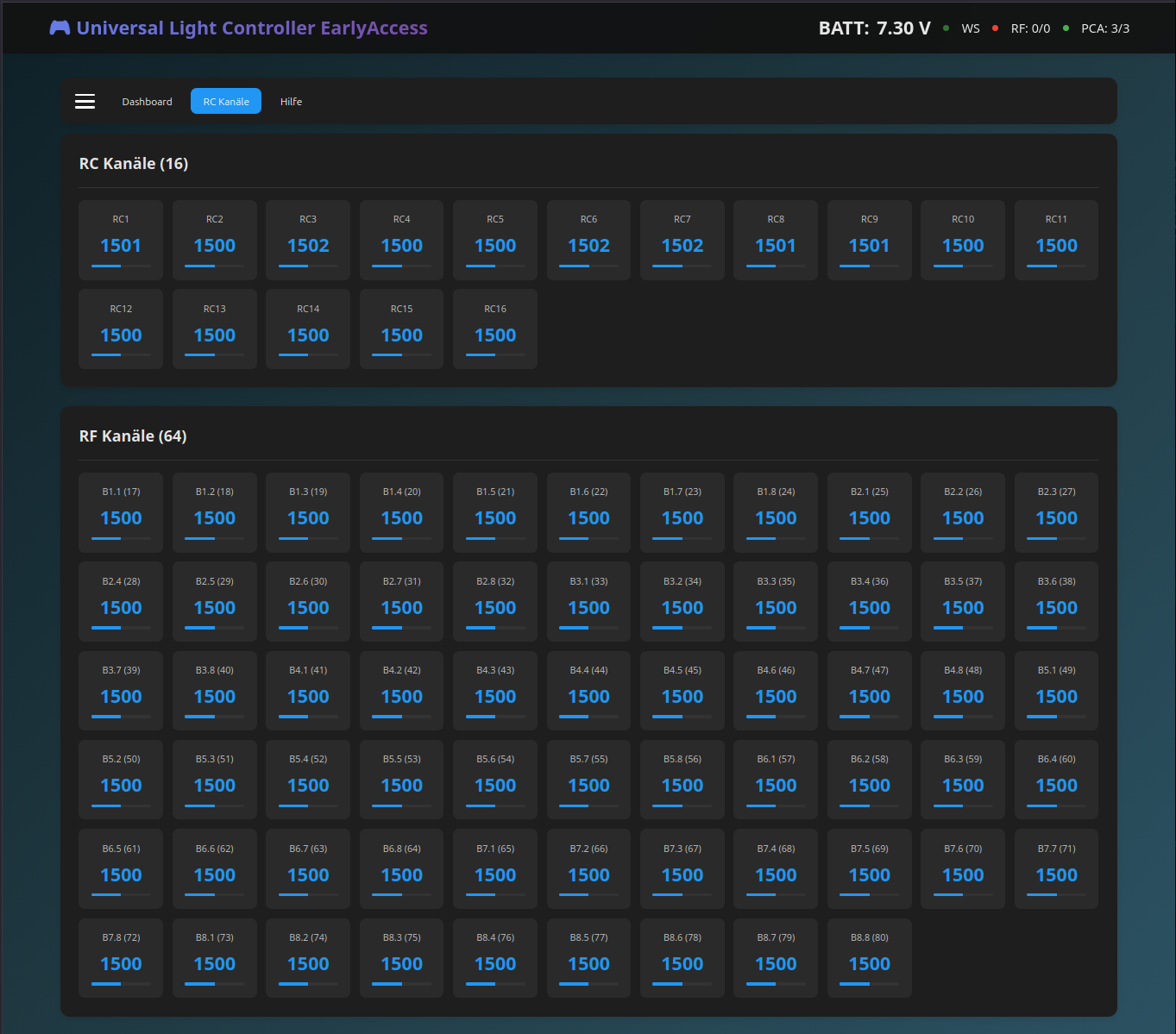 • 100 Kanäle! 16 RC Kanäle, 64 Multiswitch Kanäle, 20 interne Kanäle.